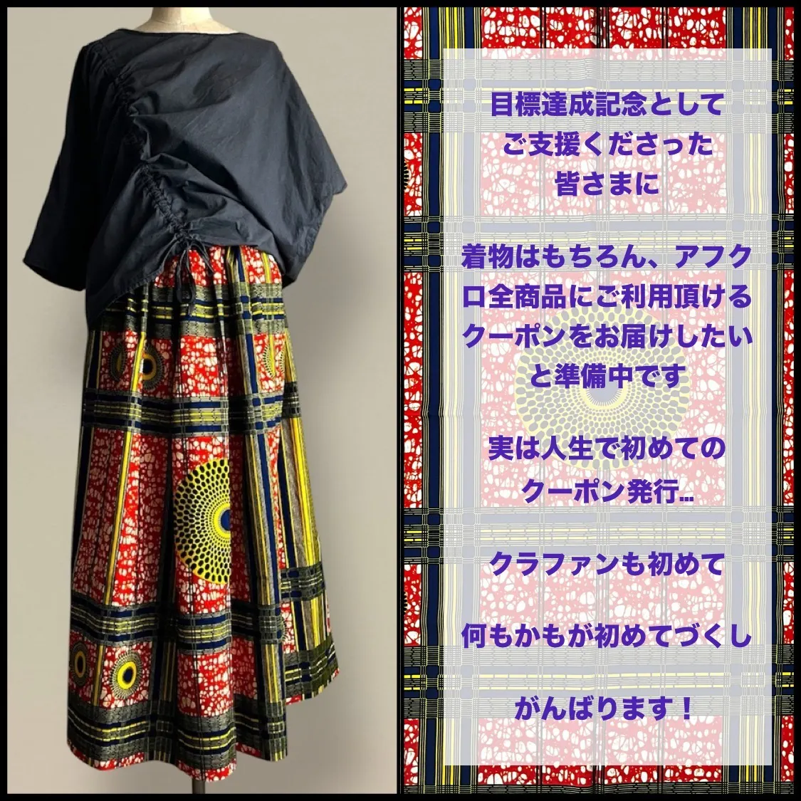 AFRICAN CLOSETのオンラインストア(BASE)でご利用頂けるクーポンをお送りしたいと準備中です。
