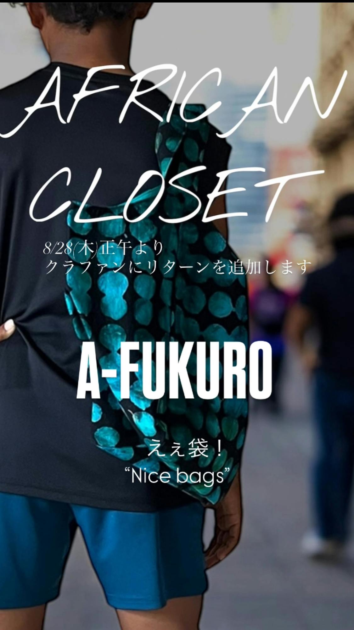 本日8/28(木)正午よりリターンに追加しました!AFRICAN CLOSET(通称「アフクロ」)オリジナル袋物バッグA-FUKURO(えぇ袋!”Nice bags!”)たっぷり入る大容量サイズですが折りたたんでコンパクトに収まるお行儀の良い袋物バッグ西アフリカ・ガーナのテキスタイルブランドWOODINの発色の良い色無地を内布に使用していますので表も中身もアフリカづくし!A-FUKUROとココロの旅を日々ご一緒にhttps://camp-fire.jp/projects/855620/view引き続き応援・ご支援のほどよろしくお願いします!