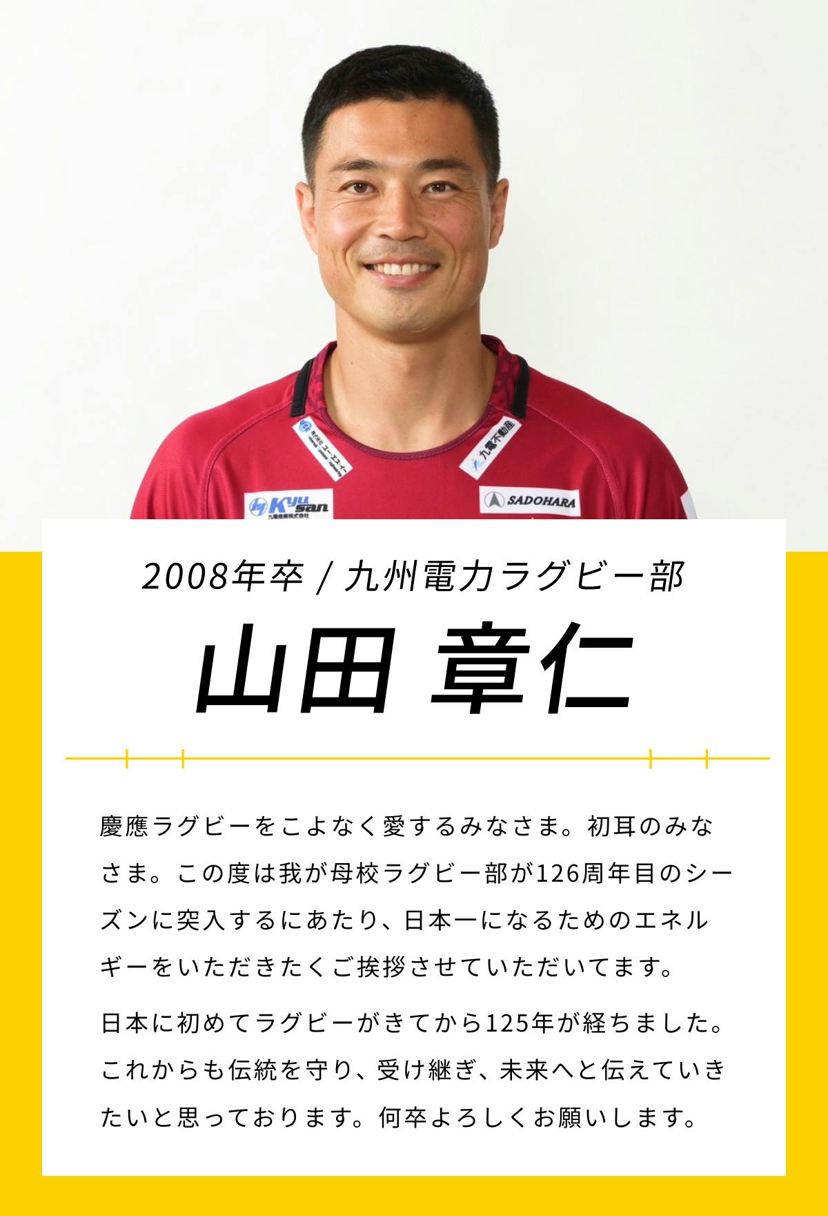 <提供グッズ・サイズ一覧>山田章仁選手(2008年卒)/九州電力キューデンヴォルテクス SOLD OUT