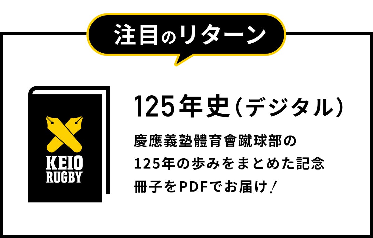 慶應義塾體育會蹴球部の125年の歩みをまとめた記念冊子(デジタル)をメールにてお届けします。
