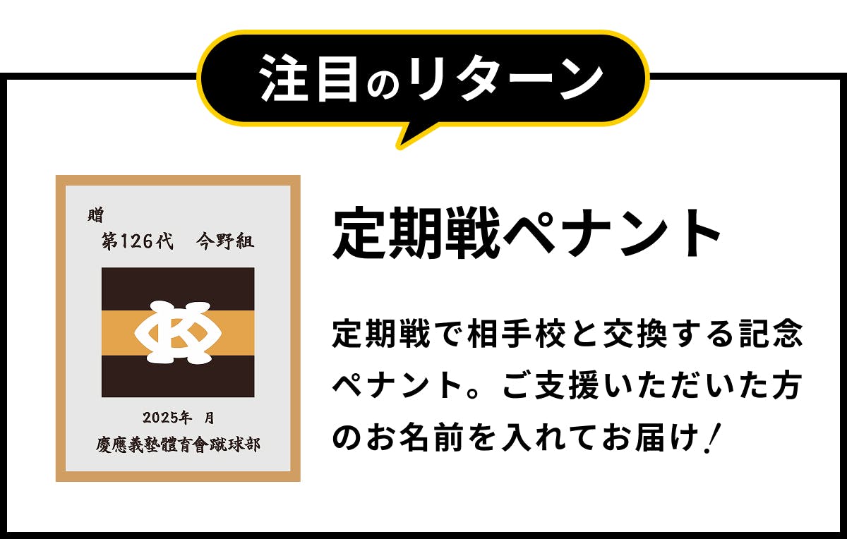 慶應にゆかりのある方も、そうでない方も。皆さんからのご支援は、文字通り私たちの“血肉”となって、伝統を次の世代へ繋いでいく力になります。そして必ず、それを勝利への一歩に変えてみせます。