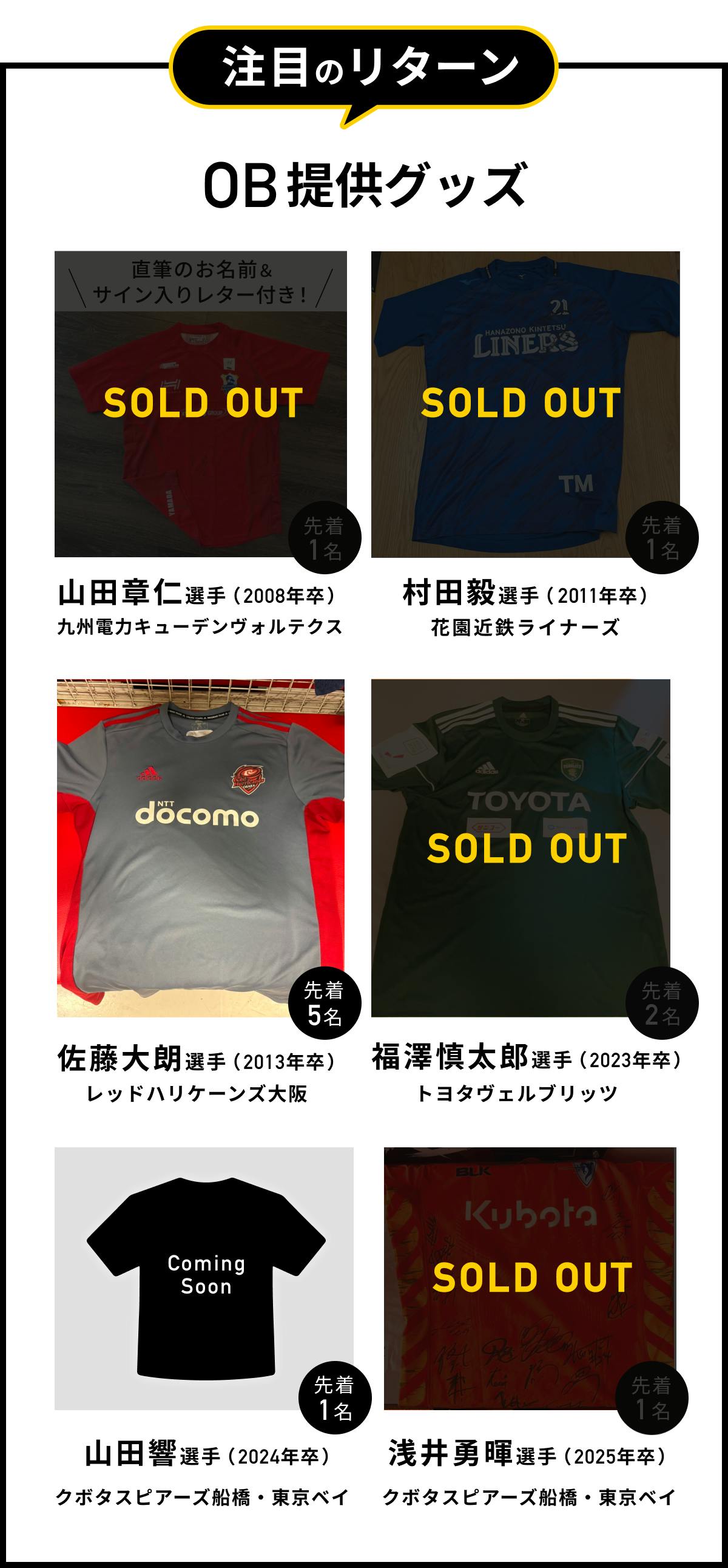 | 【OB提供】歴史をつないで応援!佐藤大朗選手コース | 50,000円 |