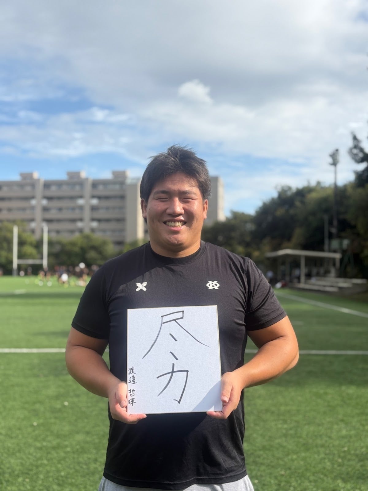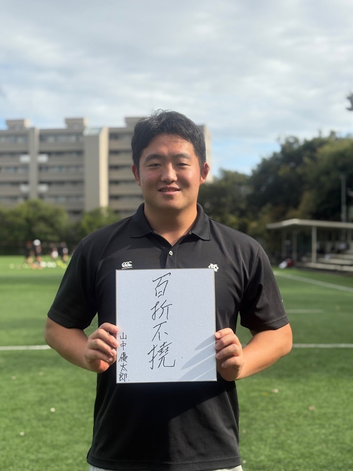 怪我も多く経験し辛い時期も多かったですが、同期をはじめ多くの人に支えられてきた4年間でした。残り少ない期間、グラウンドでLOとして舞い、チームの勝利に貢献できるよう頑張ります。