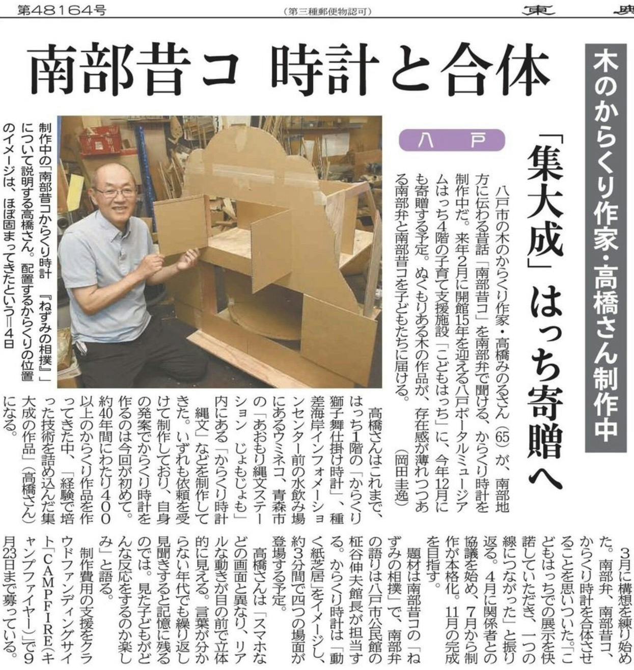 8月4日、デーリー東北新聞社様の記事に掲載していただきました。ありがとうございました。今後ともよろしくお願いいたします。