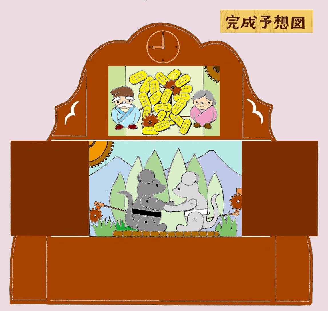 今回の作品では「木のからくり」「南部弁の語り」を組み合わせる初めての試みになります。「ねずみの相撲」の場面がからくり仕掛けで動き、その動きに合わせ、南部昔コの語り部である柾谷伸夫氏による南部弁のナレーションが流れます。