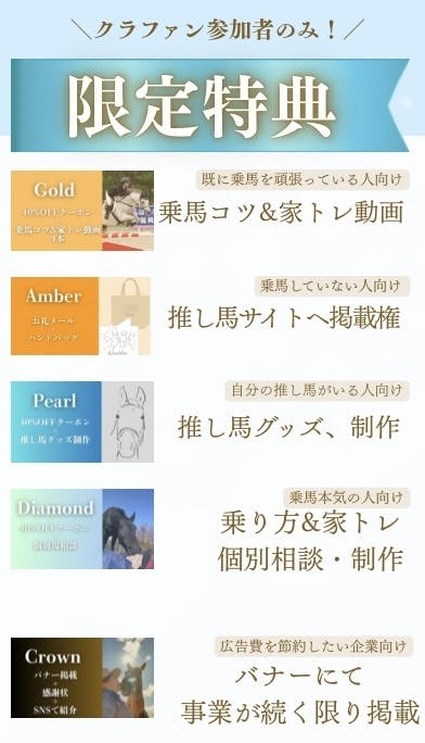 このセカンドゴール50万円は、「乗馬クラブ応援物資ページの制作」に使わせていただきたいと思います。