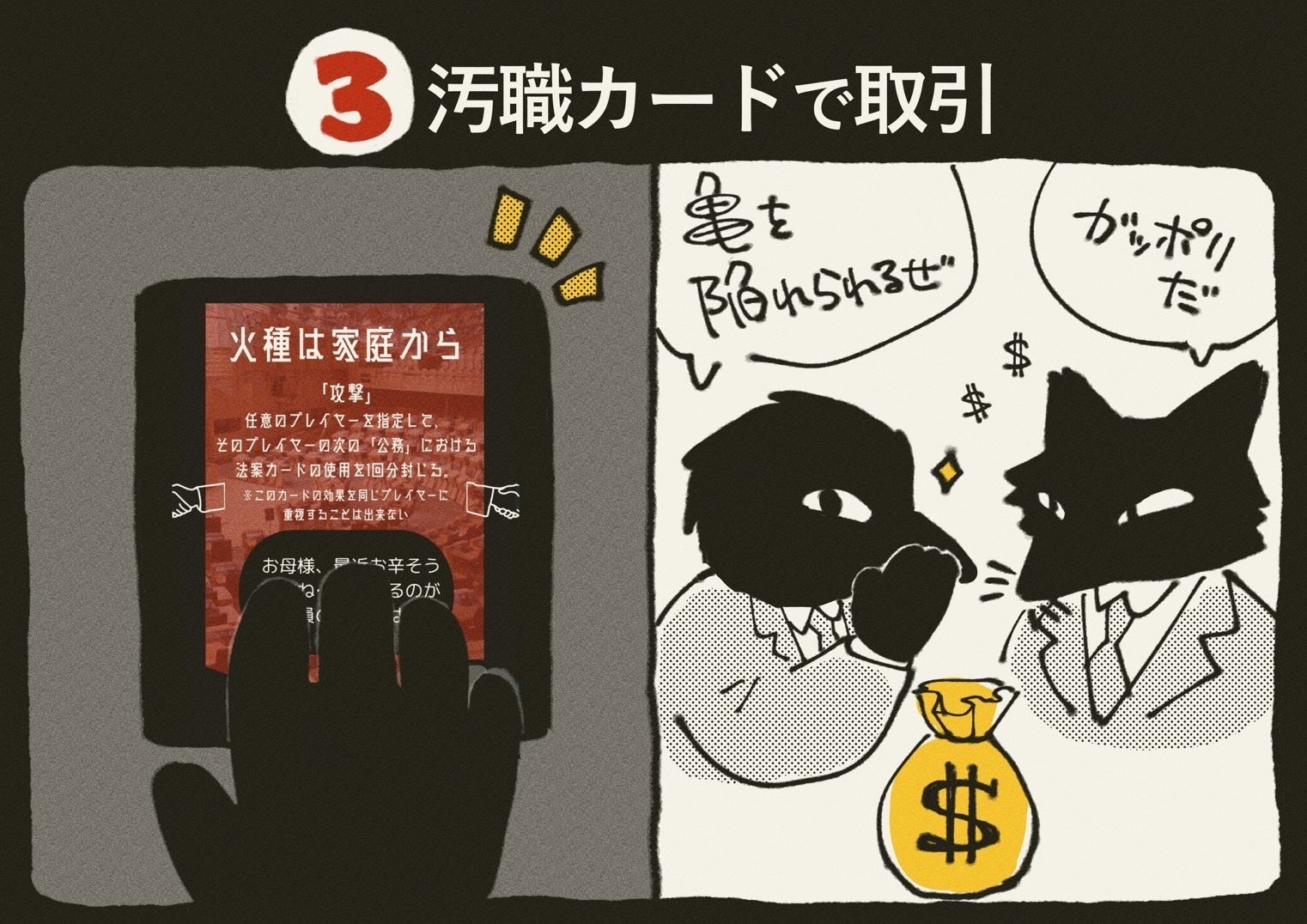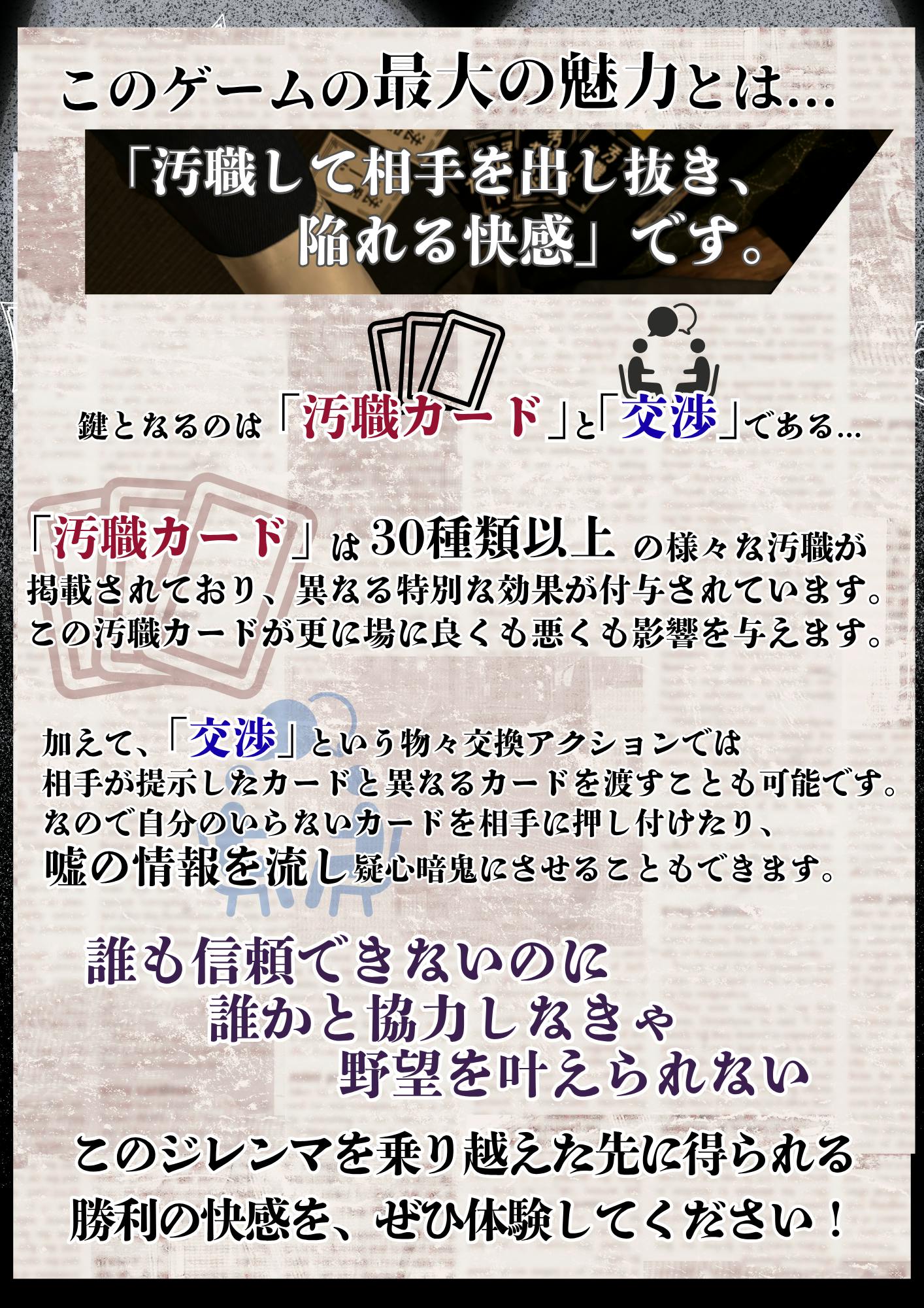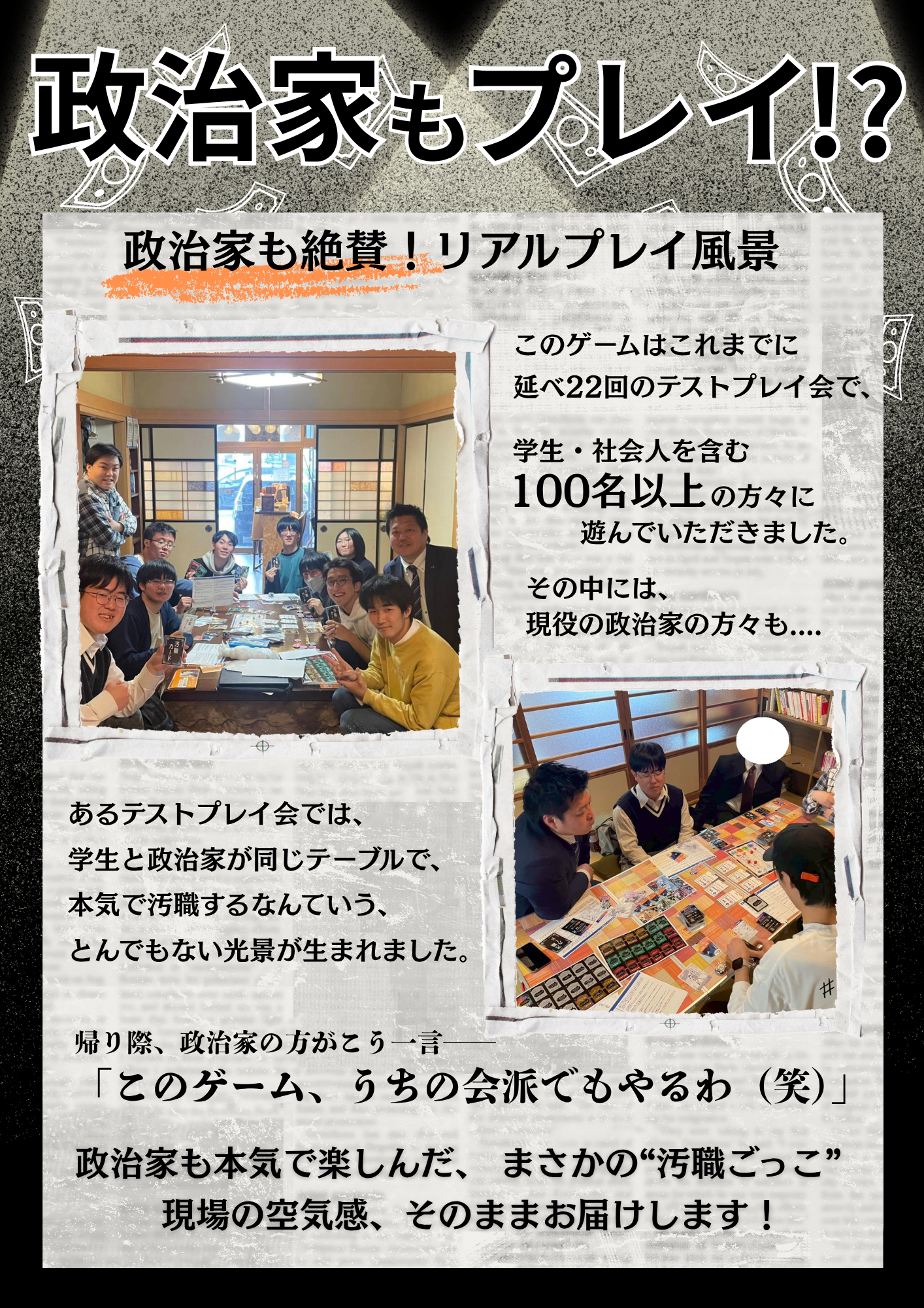 でも、僕にとって「ボードゲームを作って届けること」はあくまでスタートラインにすぎません。このプロジェクトの真の狙いは――「もっともっと多くの人に、気持ちよく汚職してもらうこと」です。