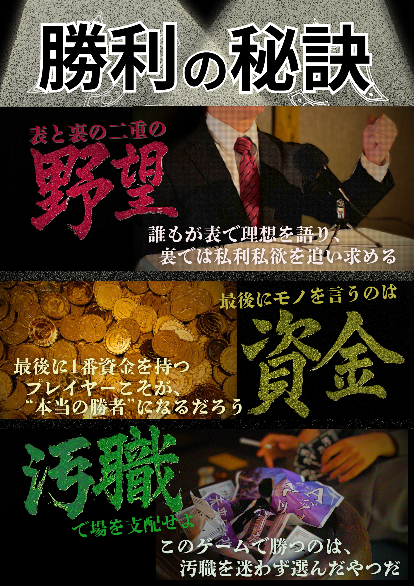 白状すると、嬉々として汚職するのが見たいから、こういうゲームを作りました。