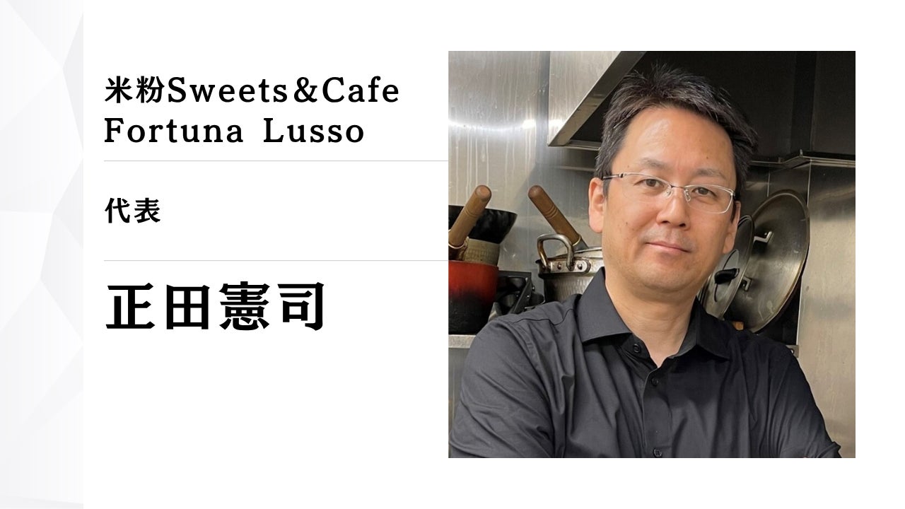 こんにちは。千葉県柏市に拠点を置く、米粉Sweets&Cafe Fortuna Lussoの代表、正田憲司と申します。