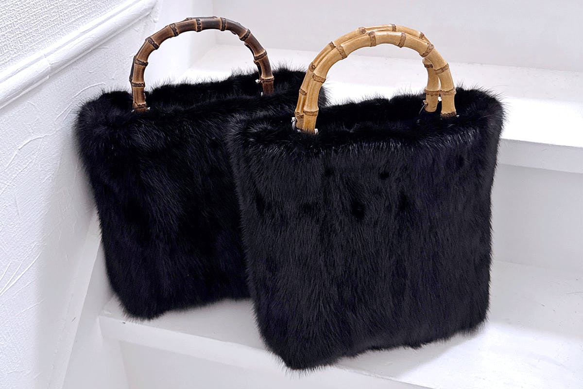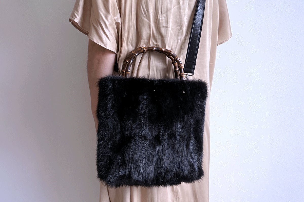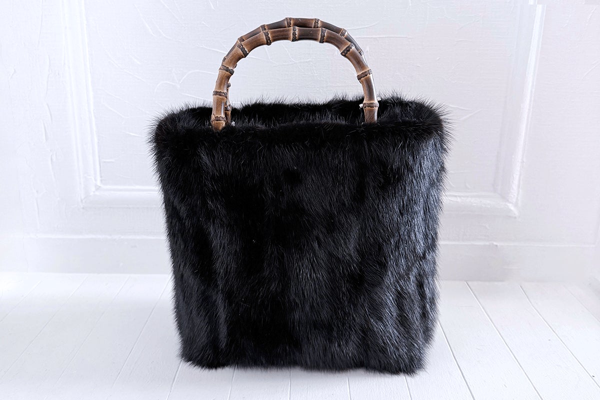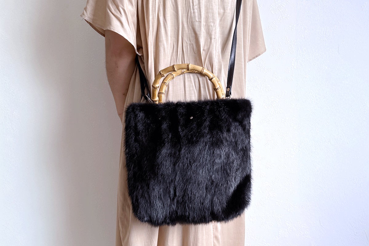 【バンブートートバッグ / ブラックミンク / ハンドル:炭焼き】