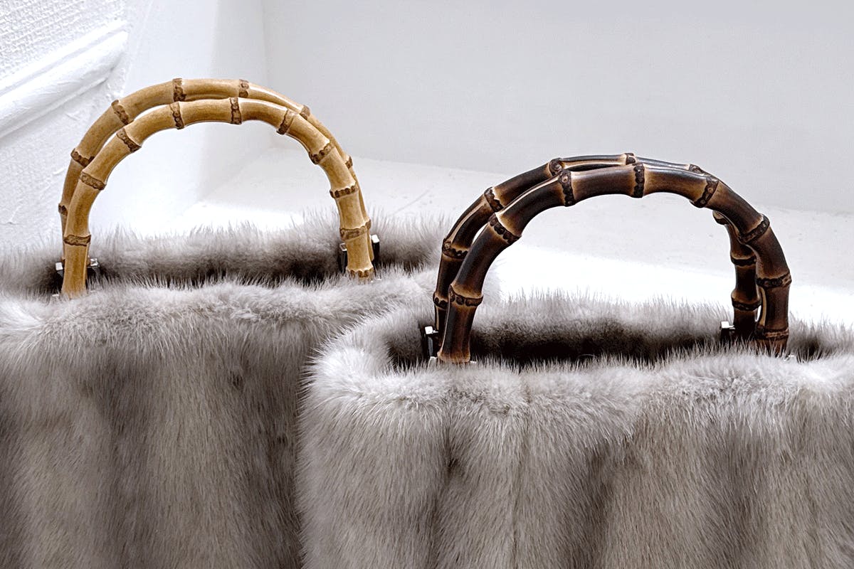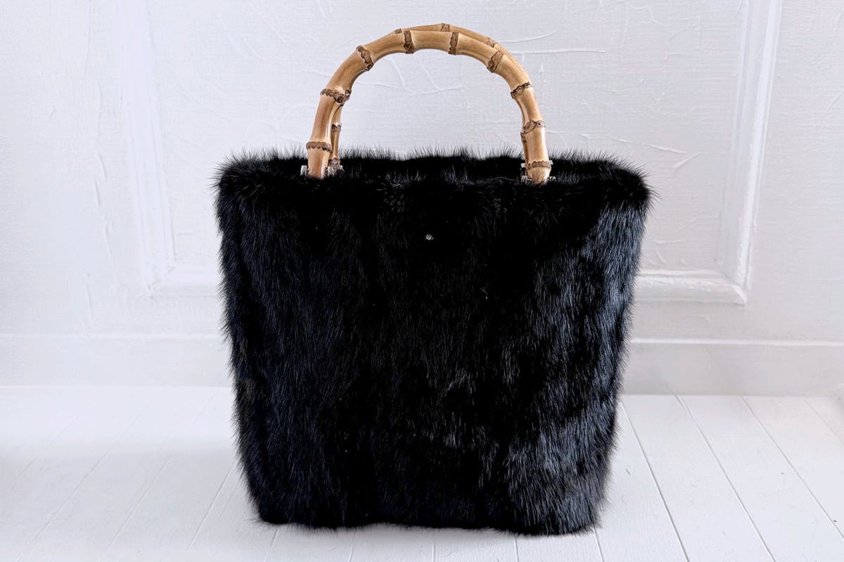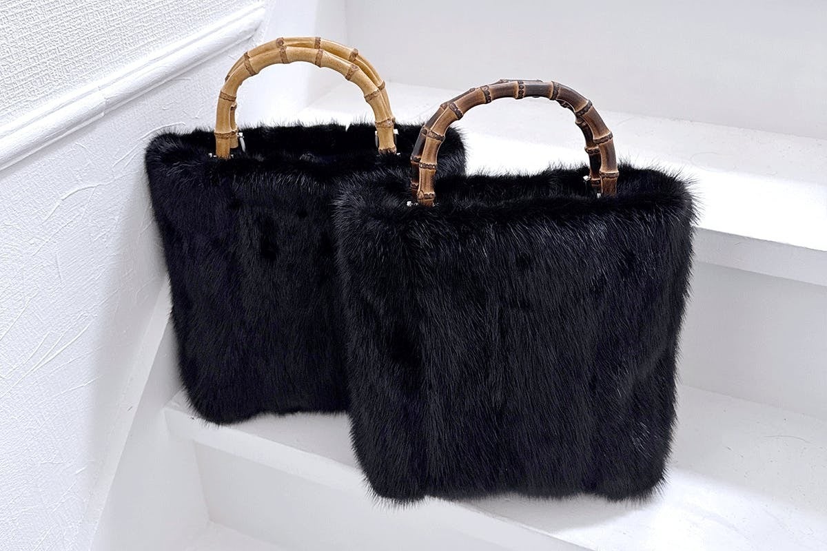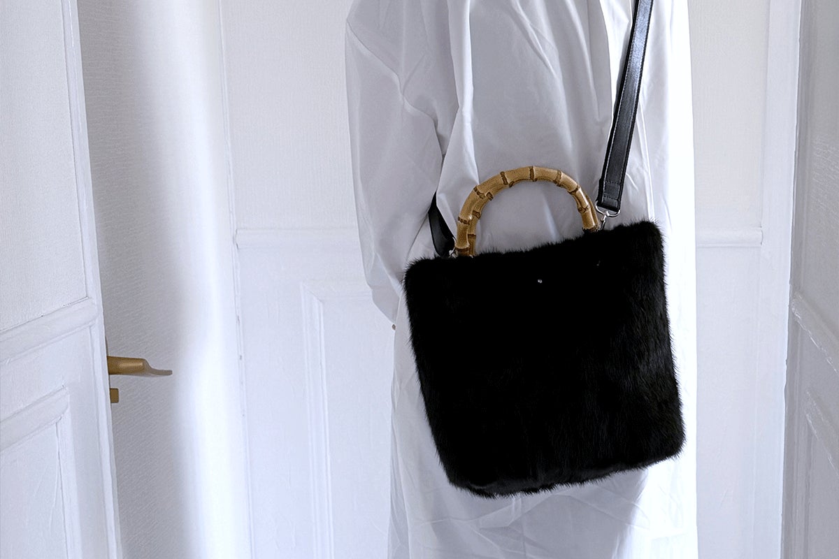【バンブートートバッグ / ブラックミンク / ハンドル:炭焼き】
