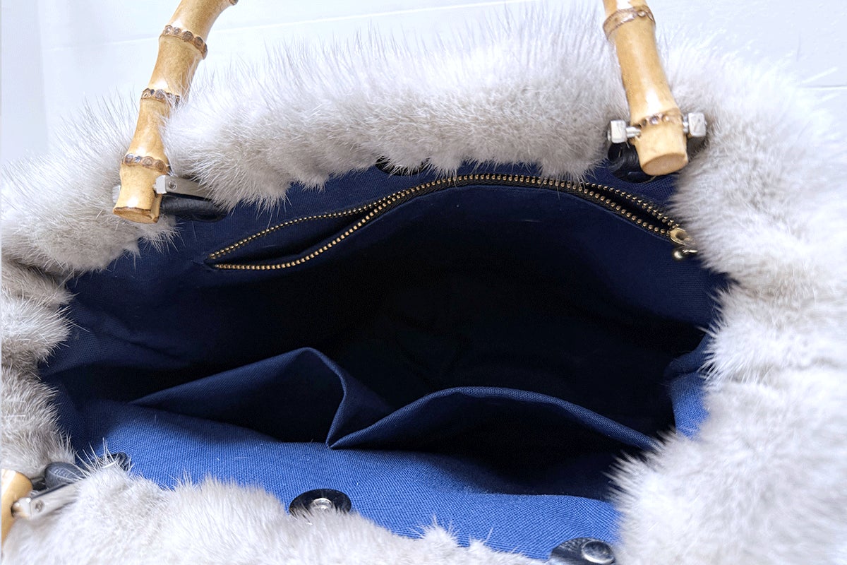 【バンブートートバッグ / サファイヤミンク / ハンドル:写真左・炭焼き:写真右・生成り】