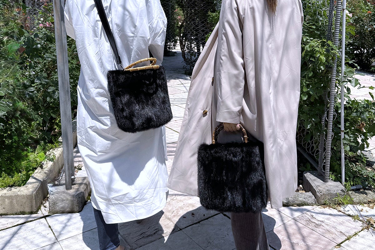 【バンブートートバッグ / ブラックミンク / ハンドル:写真左・炭焼き:写真右・生成り】