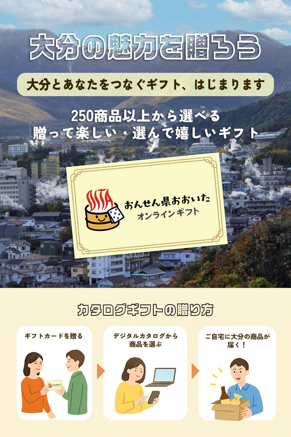 そんな「おんせん県おおいたオンラインショップ」から生まれたのが、選りすぐりの大分県産品250点以上の中から選べるデジタルカタログギフト「おんせん県おおいたオンラインギフト」です。
