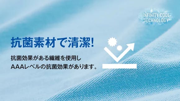 A. ブルーネームの「INFINITY COOL」が入っている面が表側となります。裏側が肌に触れることで、涼しい感触を実感いただけます。