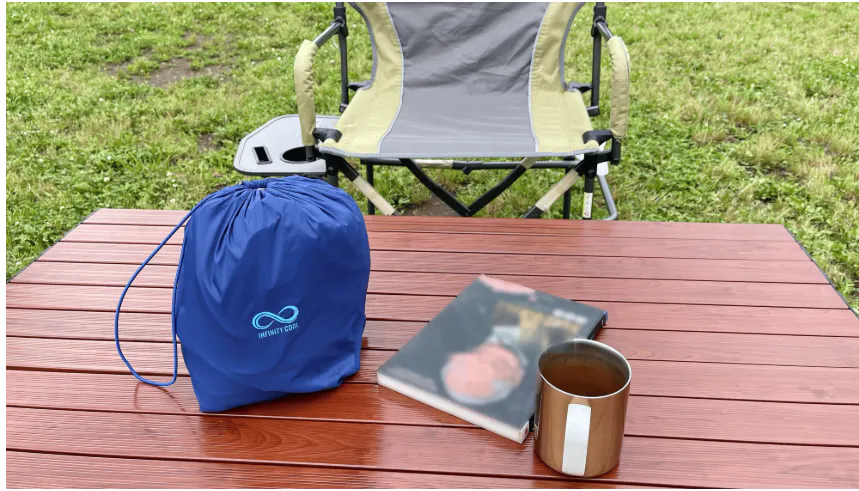 『INFINITY COOL BLANKET』— どこでも快適、ひんやり極上の寝心地!コンパクトで収納しやすく、車中泊やアウトドアに最適。汚れても丸洗いOKで清潔に使えます。室内でも外でも、これ一枚で快適な眠りを。