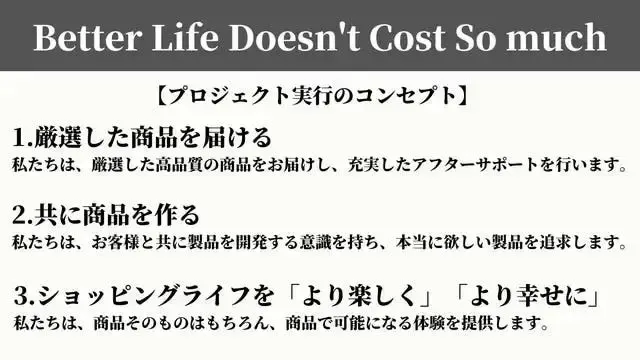 今後は世の中にある「良い製品」を厳選し、皆さまにお届けいたします。応援を宜しくお願い致します。