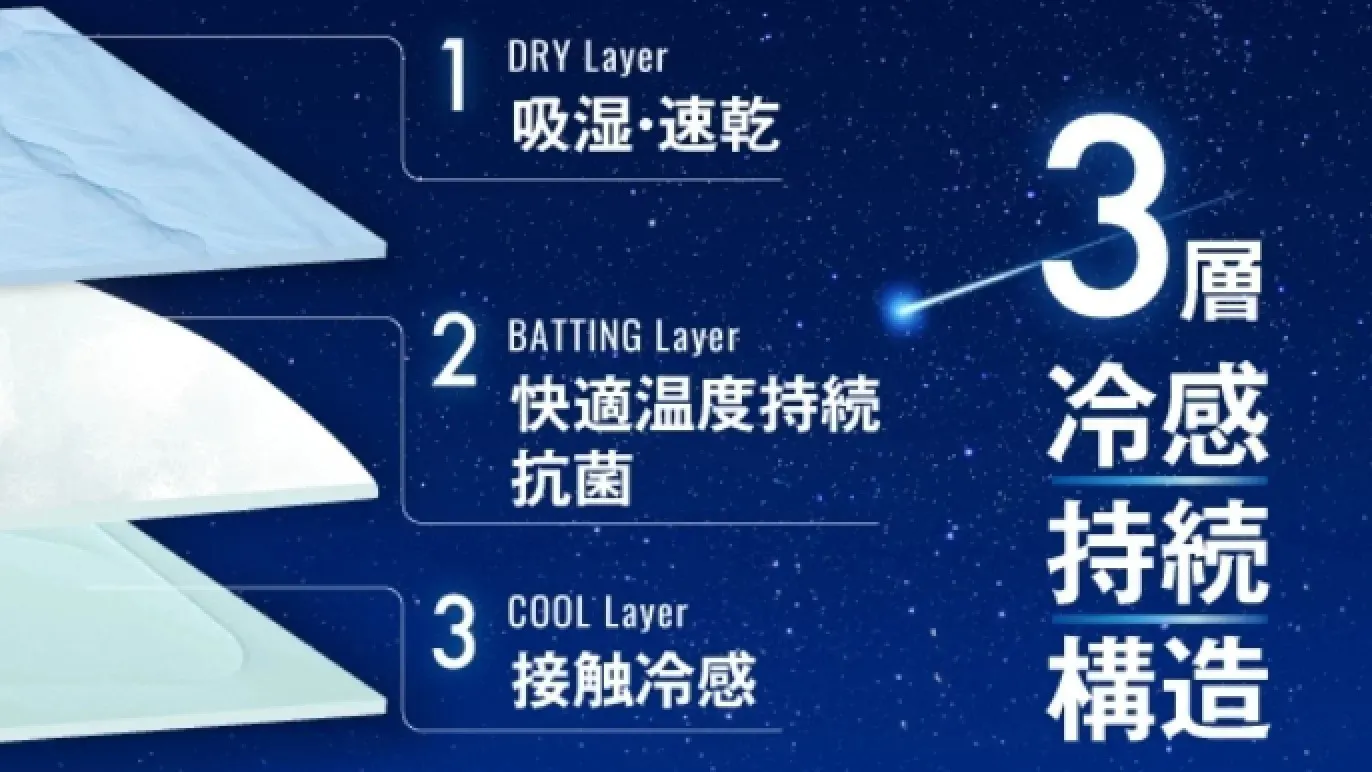 熱をしっかり遮り、ムレを逃して、夜を通して快適な温度をキープ。寝返りするたびにひんやり感がよみがえり、まるで冷たさが巡るような清涼体験をお届けします。