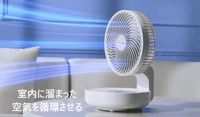 広範囲にやさしい風を送り届け、空気を効率よく循環。暑さがこもりがちな部屋もムラなく涼しく保ちます。