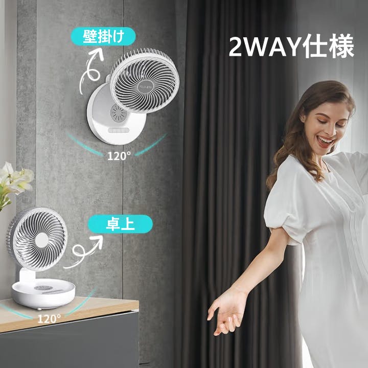 FDLAI扇風機は、スタンドでデスクに置いて使うのはもちろん、付属のパーツで壁に掛けることも可能な2WAY設計。