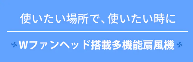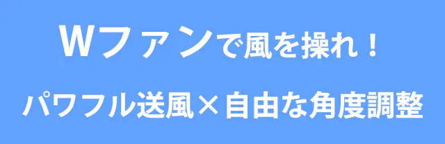 さらに、2つの風が合わさって風力は倍増!ピンポイント送風から広範囲まで、思い通りに風をコントロール。小型なのに、まるで据え置き型のようなパワーを体感できます。