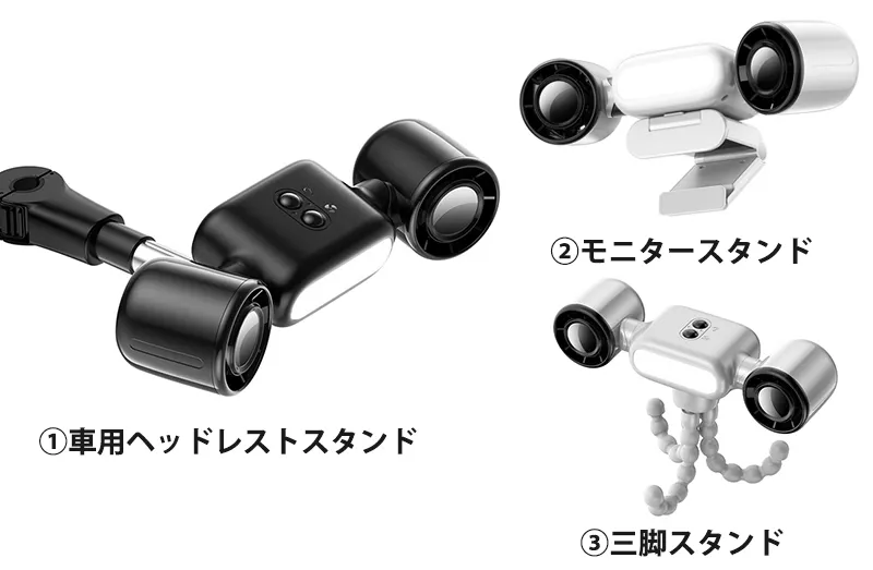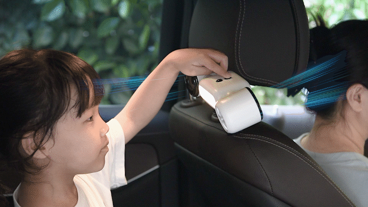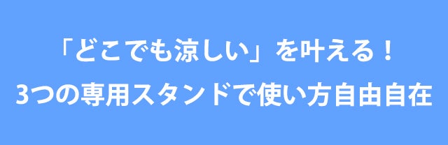さらに、3種類のスタンドが付属しているので、車内やベビーカーやモニターなど、あらゆるシーンにフィット。使いたい場所に、風と光を自由に届けます。