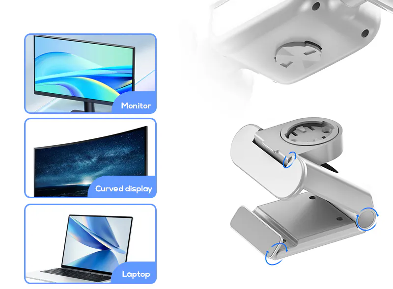 薄型フックで、モニターにしっかり固定。デスクワーク中や寝る前のベッドサイドにもすっきり設置でき、風と光(LEDライト)を欲しい場所へ届けます。