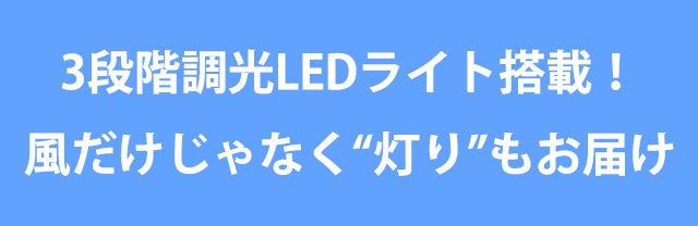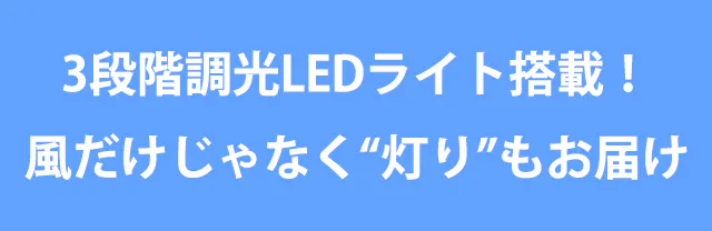 Memo Fanは、送風だけじゃない。やさしい光で周囲を照らすLEDライトを搭載し、暗がりでの使い勝手も抜群!