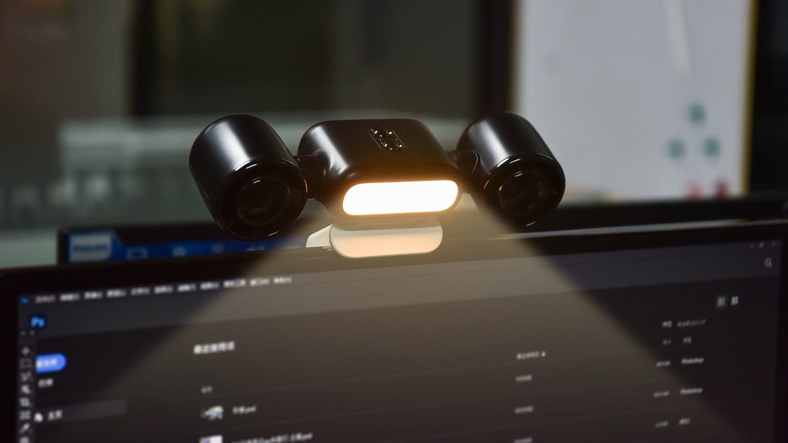 PCモニターに取り付ければ、ちょっとした手元の明かりとしても便利。夜の作業やオンライン会議にもぴったり。