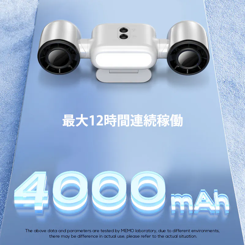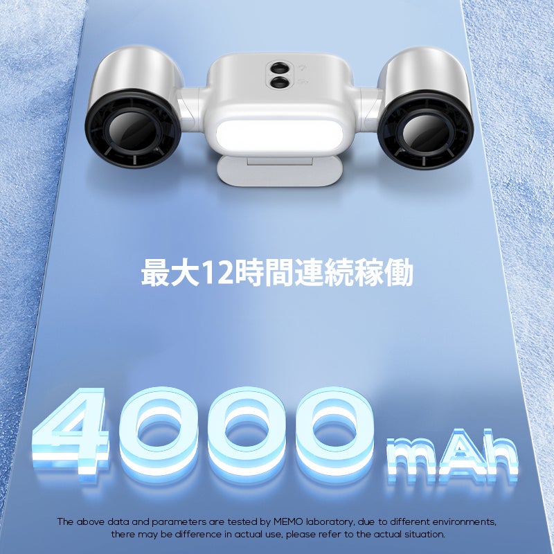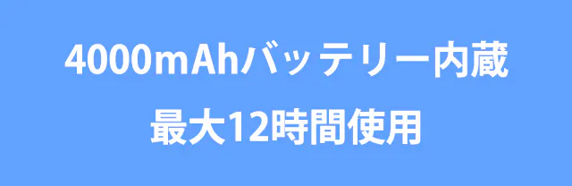 大容量4000mAhバッテリーを搭載し、フル充電で最大12時間稼働。