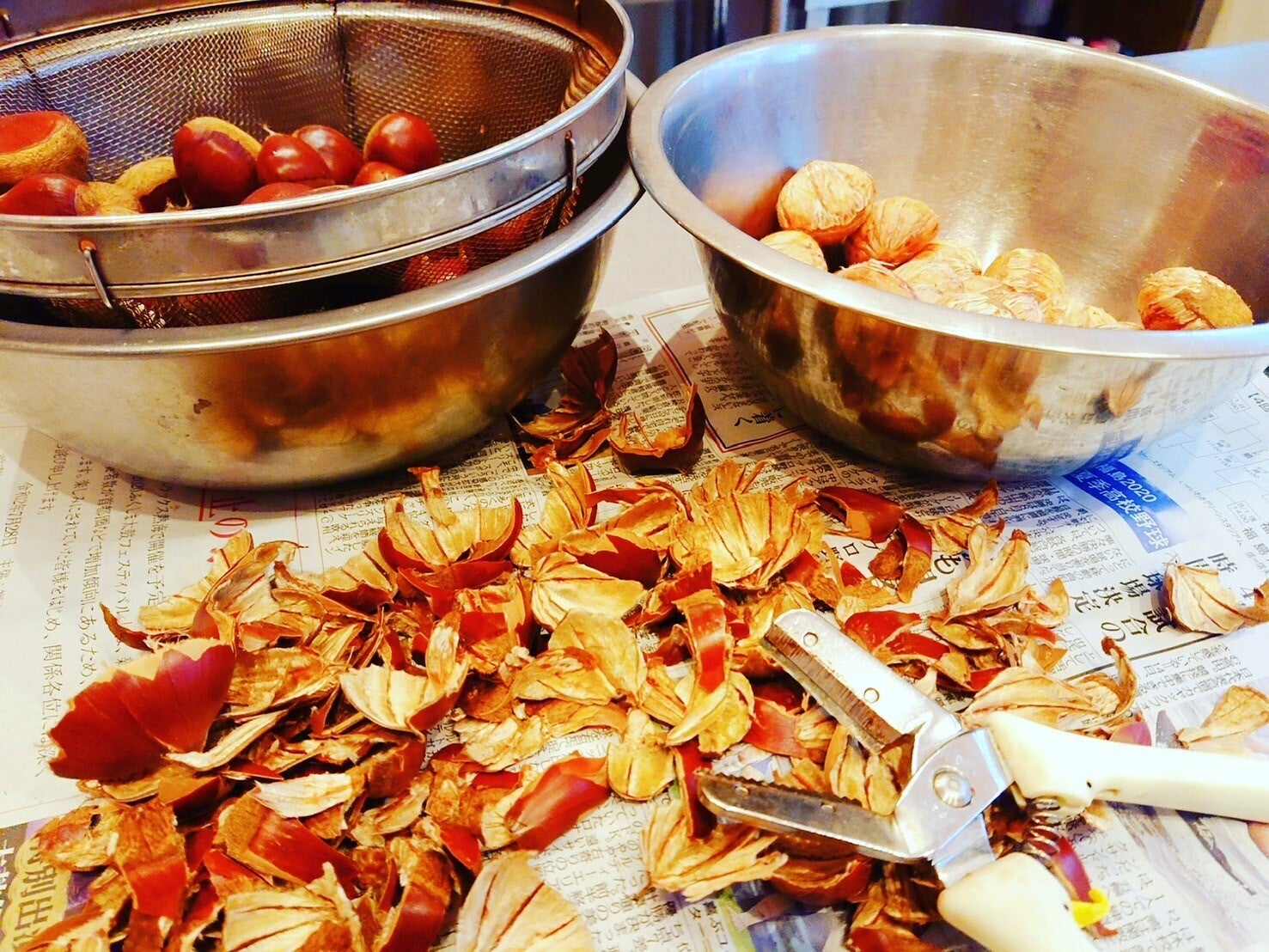 栗の下処理は大変ですが、ひとつひとつ丁寧に。