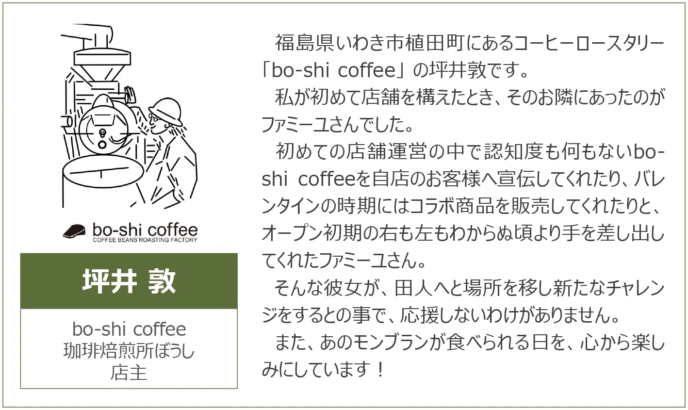 昨今の原材料費の高騰や個人店の閉店が続いている中、もう一度お店を持てるチャンスがあることを大切に、最善を尽くしたいと思います。