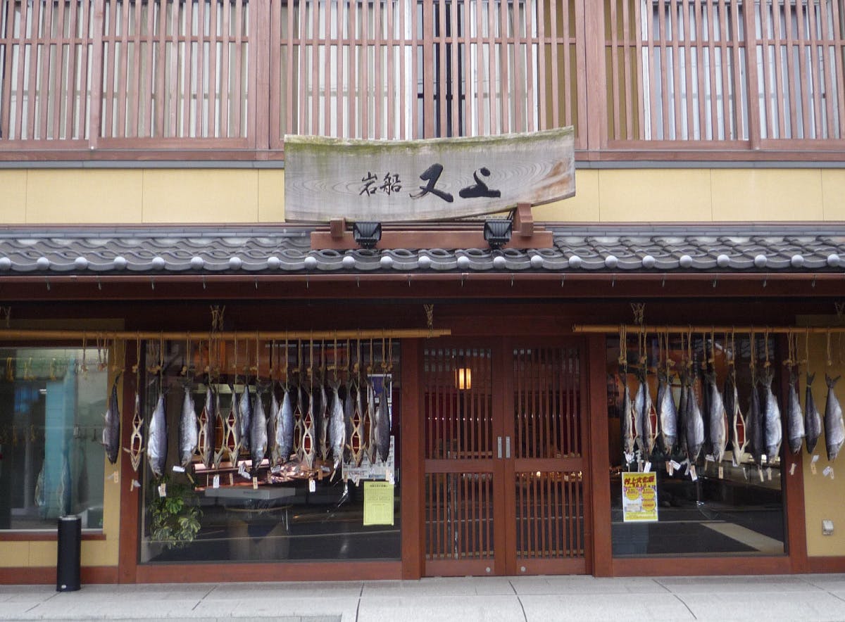 こだわりの天日干し干物を干している風景を眺めるのも一興です。