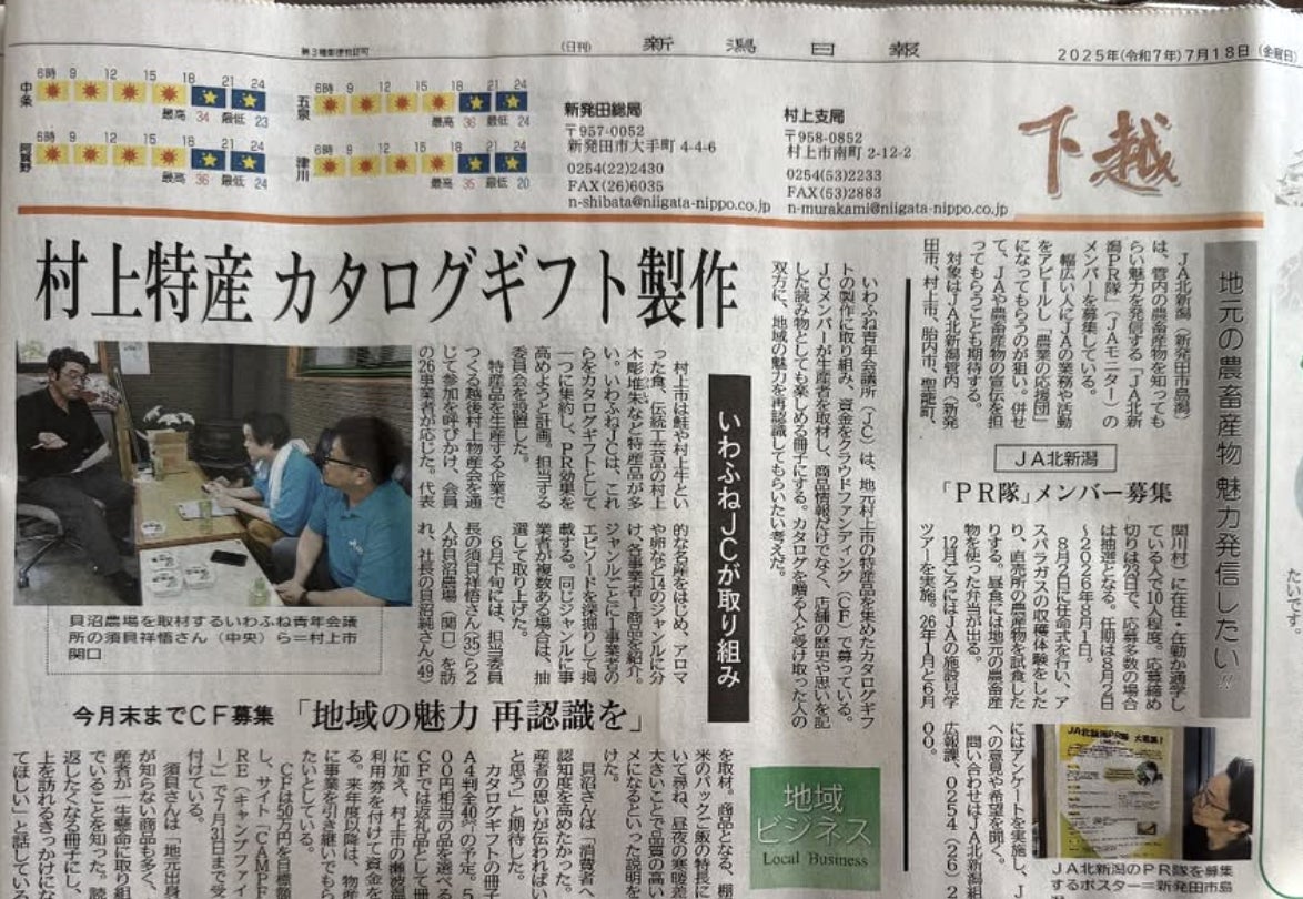 村上の多彩な魅力を詰め込んだ「村上カタログギフト製作事業」が、このたび新潟日報(7月18日付)下越地域欄にて紹介されました。