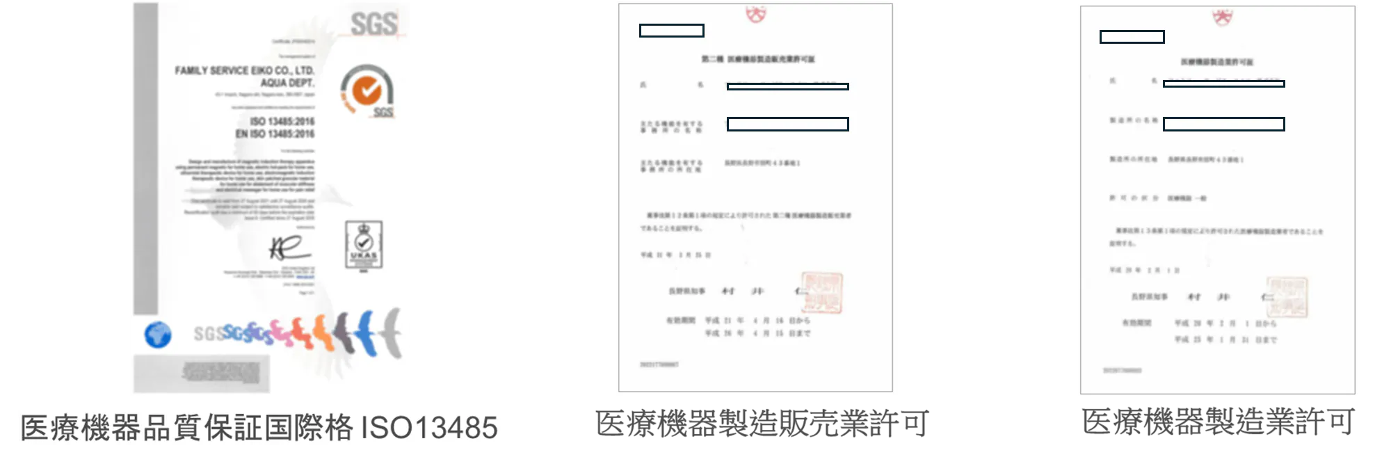 医療機器製造業、医療機器製造販売業、医療機器販売業、医療機器修理業の許可も取得しております。