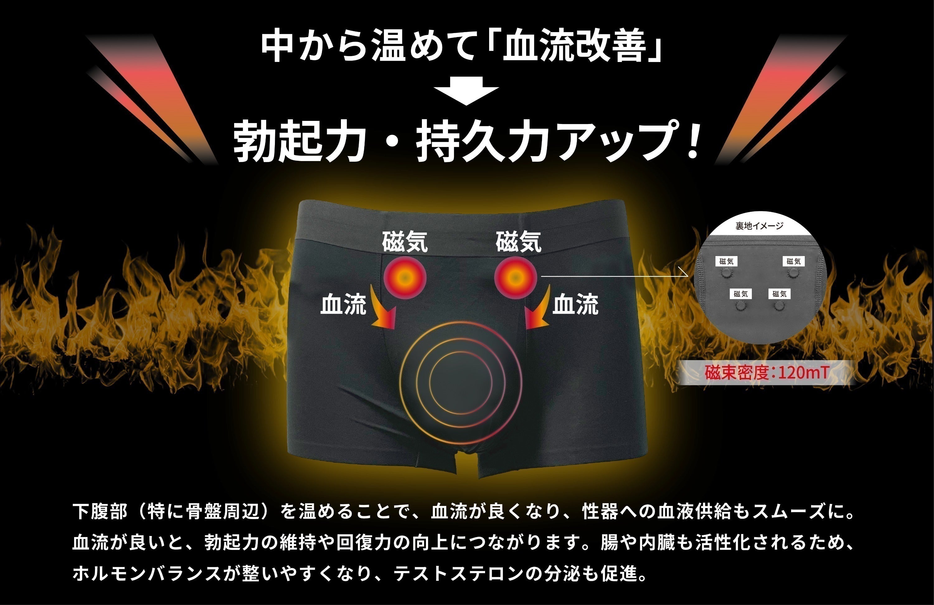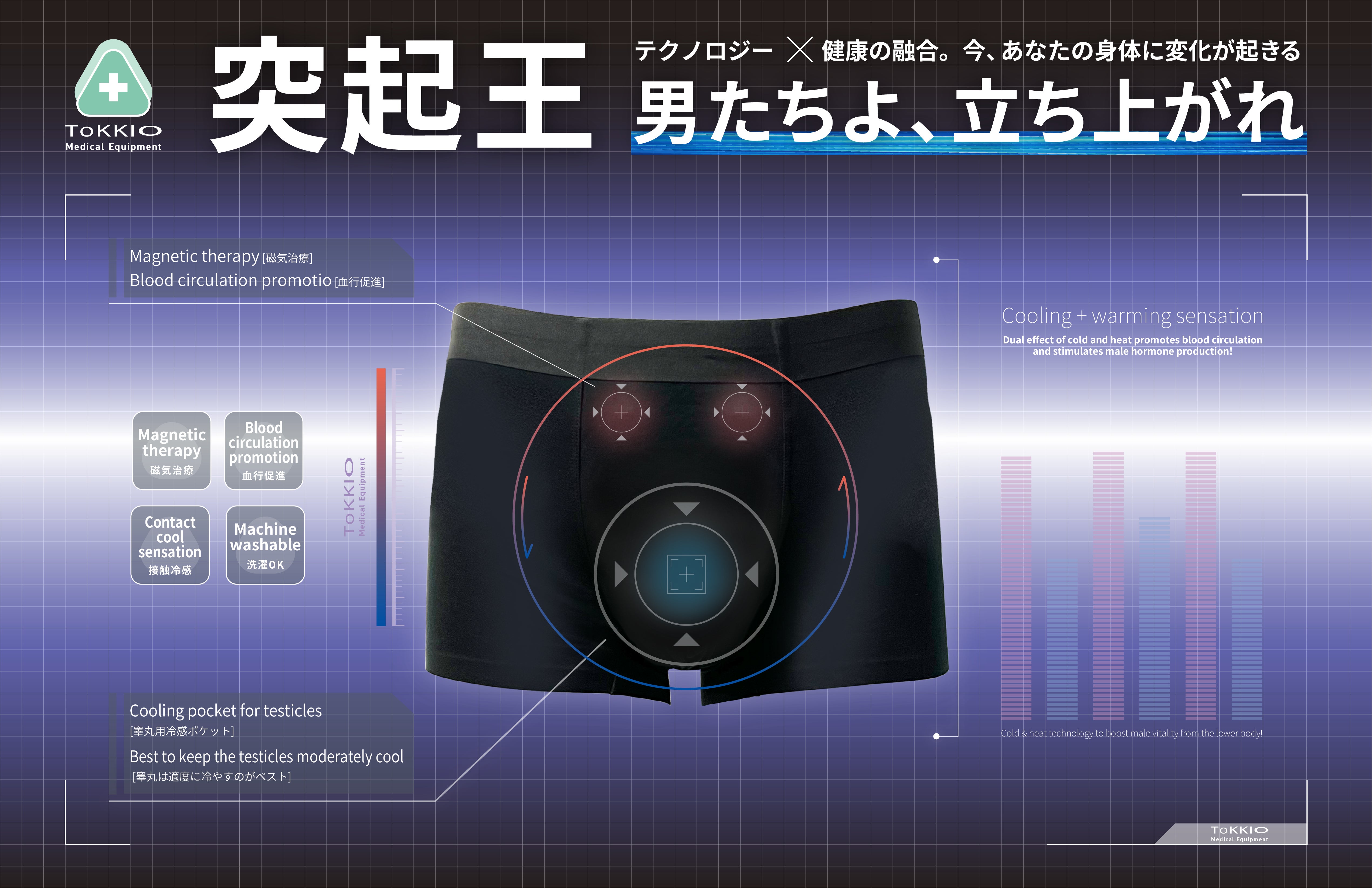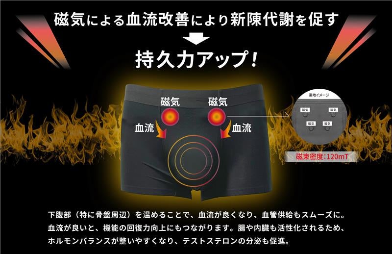管理医療機器メーカーとしての実績と信頼に裏打ちされた品質で、「血行促進」「温冷ケア」「安心の素材設計」を兼ね備えた、全く新しい“機能性パンツ”が誕生しました。医療機器にも使用される永久磁石や、冷感素材のノウハウを活かし、プロアスリートや健康意識の高い男性に向けて開発された本製品は、まさに「下半身から始めるセルフメディカルケア」の集大成です。