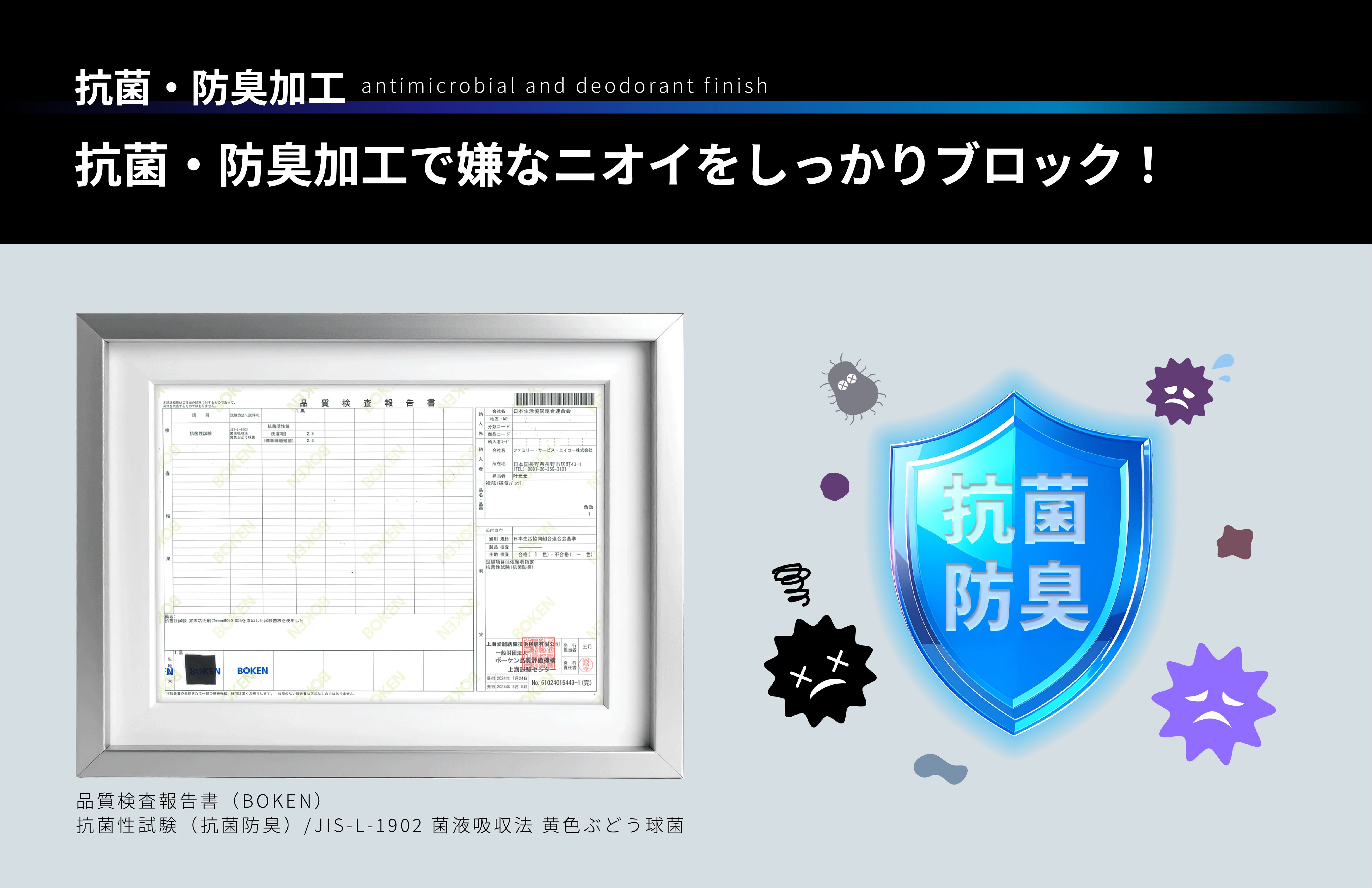 抗菌防臭の試験を受けており、正面ポケットからの気になるニオイをブロック。