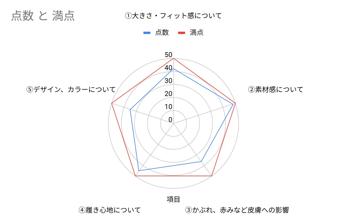 50点満点中で以下の評価として図で表しました。