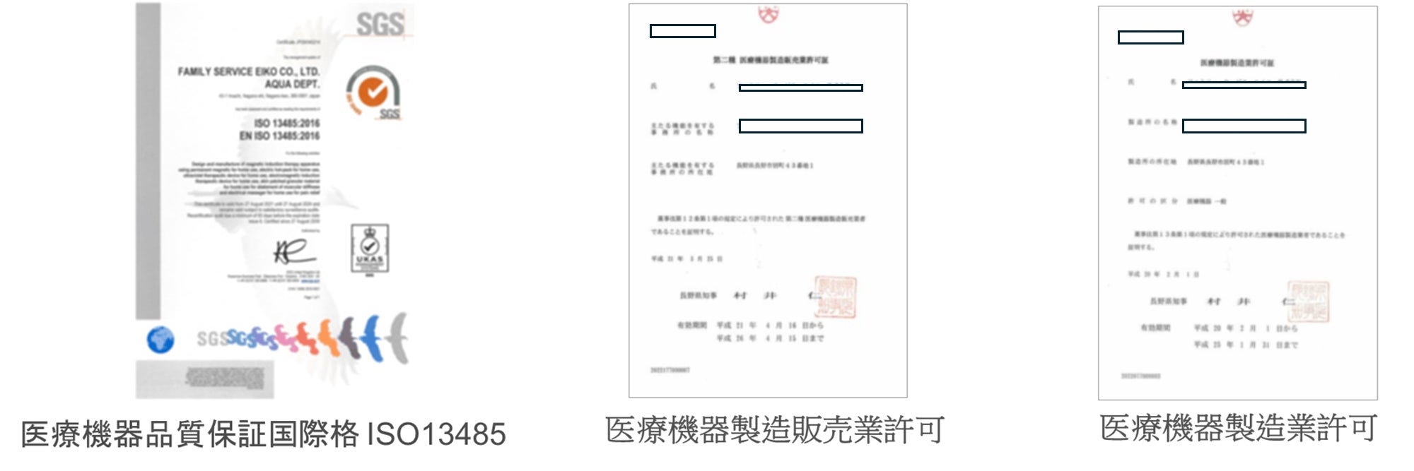 医療機器製造業、医療機器製造販売業、医療機器販売業、医療機器修理業の許可も取得しております。