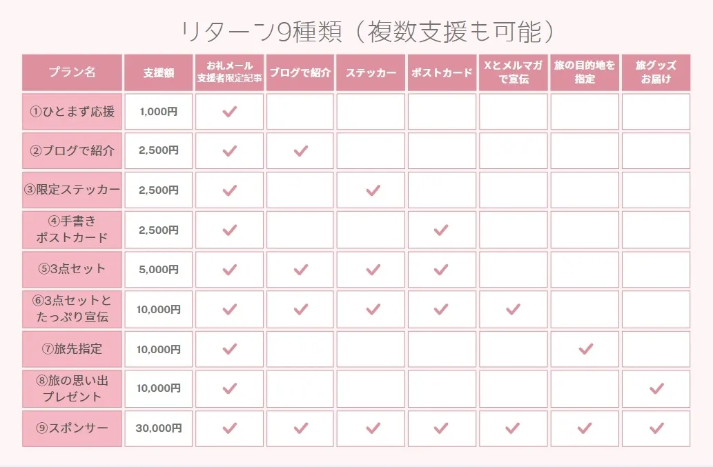 リターンは、旅が始まってから、随時おこなっていきます!