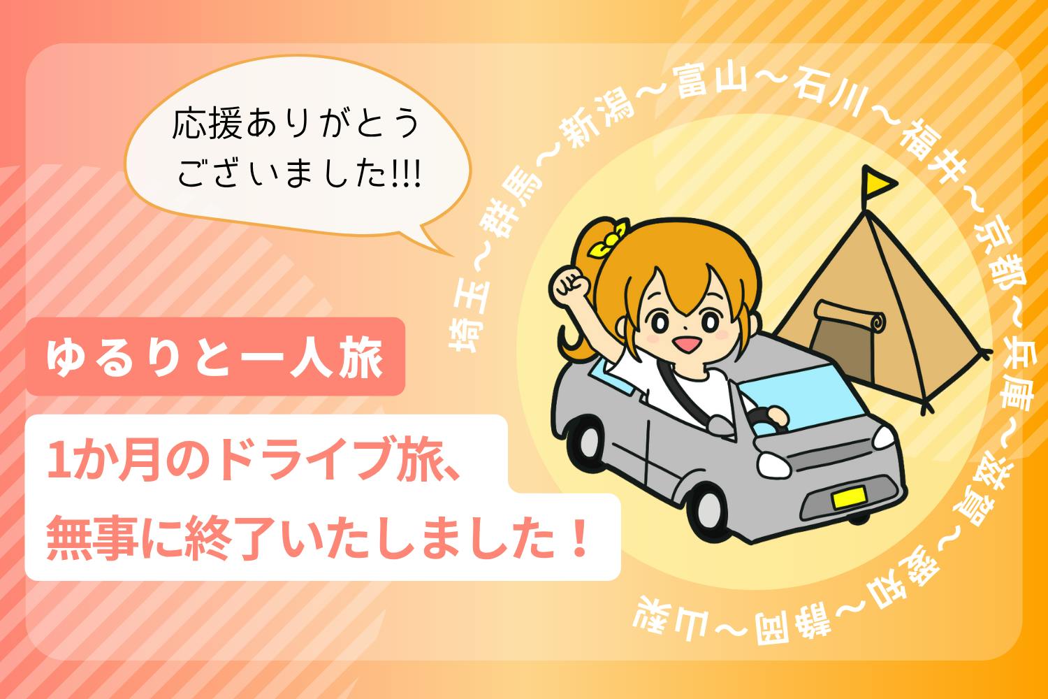 2025/07/19 15:24応援いただいた皆様へこんにちは!雑記ブロガーの山本りとです☆彡改めて、この度は「ゆるりと一人旅」に多大なるご支援や応援をいただき、誠にありがとうございました。おかげさまで、6月19日の出発からちょうど1ヶ月間にわたるドライブ旅の全行程を終え、無事に埼玉に帰着いたしましたことをご報告申し上げます☆彡道中は、美しい景色に心癒されたり、おいしいグルメに感激したり、微アタオカスポットに元気をもらったり、、、毎日が刺激の連続でした!大きなトラブルもなく、安全に、健康に、そして心から楽しく旅ができたのは、ひとえに皆様の温かいご支援と応援があったからこそです。「りとさん、まさか毎日の様子をブログに書くつもり…!?しかもこのボリュームで…!?」と、ご心配の(歓喜の??)お声もたくさんいただきましたが、実は私も驚いていました。旅ブログを書き始めると、パソコンに向き合ってる時間がとても楽しくて、「ブロガー山本りとって、まだ毎日更新とかできるんだ…!書ける、書けるぞっ…!」と、私自身もうれしい誤算だったのです☆彡そして、更新のたびにみなさんからコメントやリポストをいただけて…「なんか、幸せだな~」と思っておりました_(._.)_♡まだ7月11日の名古屋編で更新が止まっておりますが、メモ書きはたくさんあります!!すこし休みをいただきながら、また楽しくブログ更新していきます(^^)/どうぞ最後まで応援いただけますと幸いです♡■毎日の旅の様子は、以下にまとまってます↓↓>>ゆるりと一人旅(天国に一番近い個人旅行)(※その他、旅での気付き・思ったこと等がザっと13個くらいあるので、ゆっくりエッセイなども書いていきます!)なお、みなさまからいただいた401,000円のご支援金は大切に旅に使わせていただきました。ザックリとした収支については、「ご支援者限定コンテンツ」としてまた報告できればと思います!改めまして、この旅を支えてくださった全ての皆様に、心より感謝申し上げます。本当にありがとうございました。感謝のお参りをしてきました@富士山頂 もっと見る【ご支援者様限定】旅ブログのGoogleアナリティクス公開させていただきます