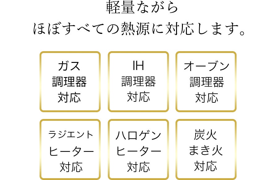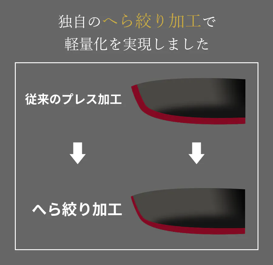 鉄製のいいところはそのままに、「重い」「錆びやすい」などの欠点を払拭。