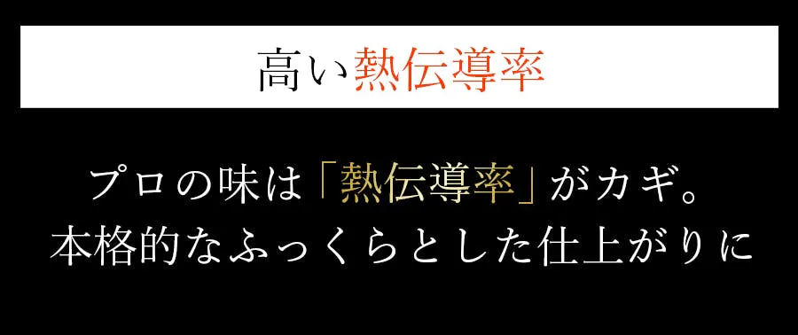 素早く温度が上がるため、予熱時間を大幅にカット。とにかく料理が美味しくできる秘密は、この抜群の熱伝導率にあります。