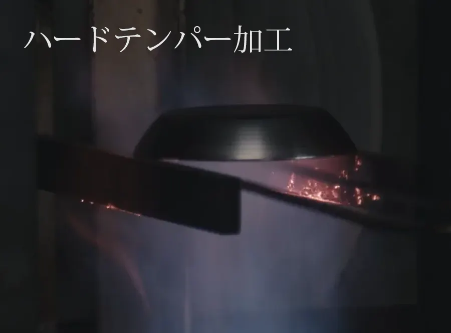 本体を約700度の高温で焼き入れた後に油に浸し、馴染ませる加工技術。お届け時には火入れ済みの状態でお届けしますので、届いてすぐにお使い頂けます。