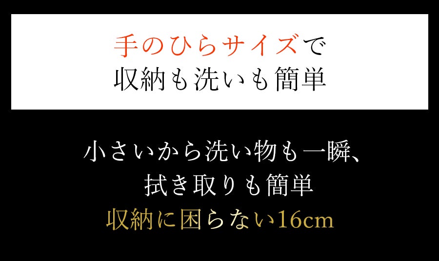 一切の無駄を省いたデザインで洗うのがスムーズ!スマートに収納できるサイズ感。