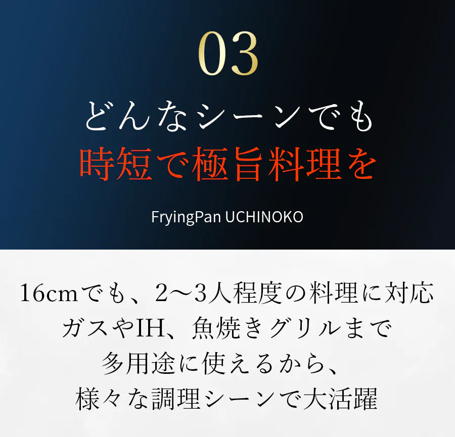 A: 「あと一品」や少量調理に最適なサイズです。1人分のおかず・お弁当の一品が十分に調理できます。コンパクトだからこそ、毎日気軽に使えるのがポイントです。