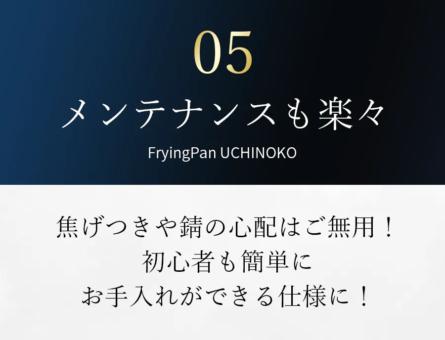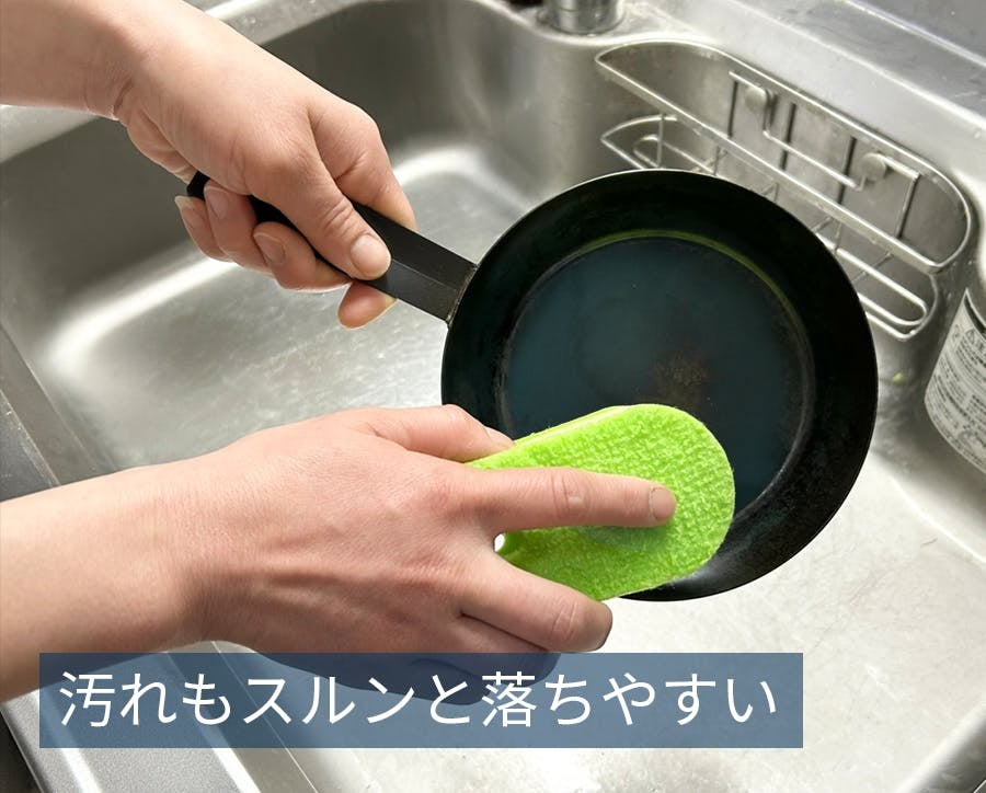 A、独自のハードテンパー加工により、一般的な鉄フライパンよりお手入れが簡単です。基本的には使用後の水洗いと、しっかり乾燥させるだけでOKです。