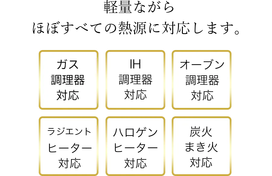 セーフティ機能のあるIHでも反応するぎりぎりの軽さを追及!