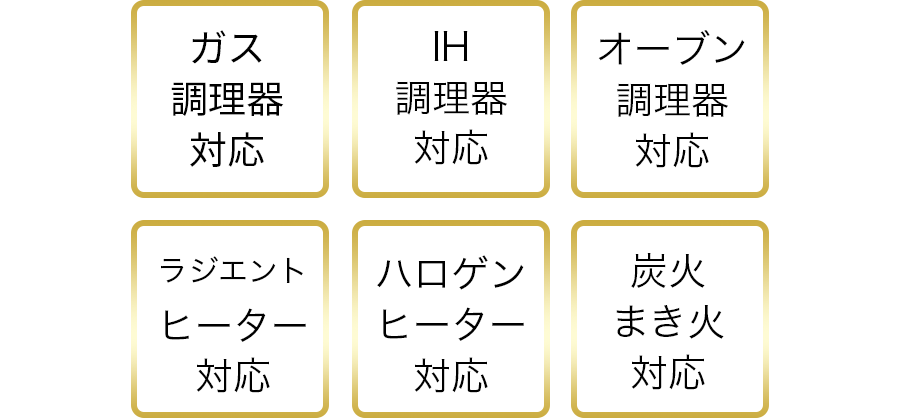 A、はい、ご使用いただけます。ガス・IH・オーブン・グリル・直火など様々な熱源に対応しているため、ご家庭ではもちろん、アウトドアでも活躍します。
