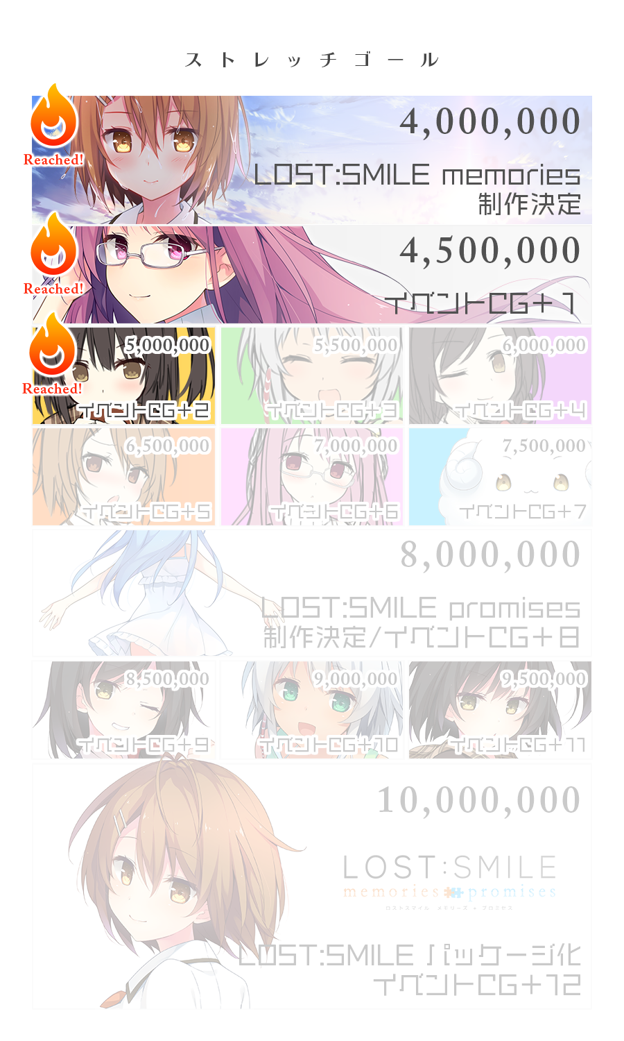 たとえば、ストレッチゴールである「LOST:SMILE promises(後編)制作」が達成されたとき、